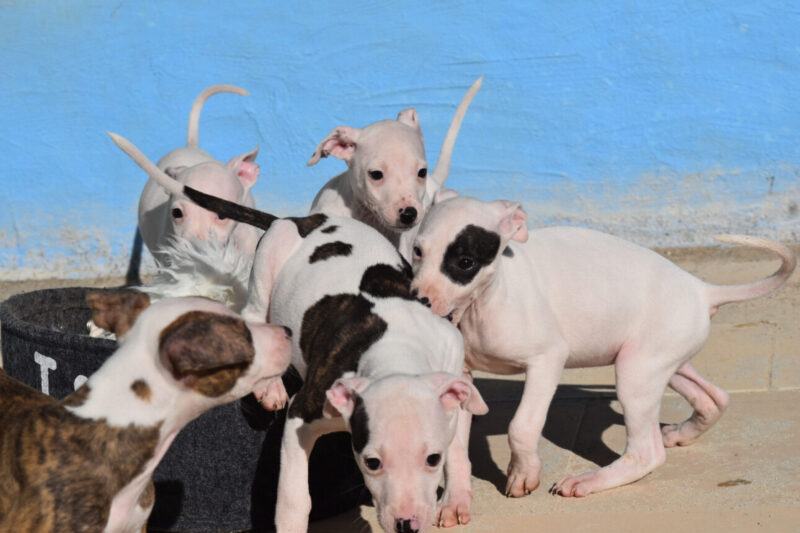 Emilia, Adriana, Pinto, Snowwhite et Bonachon ont été trouvés un jour de pluie dans une boîte avec une couverture près d’une station-service. Leur ventre était gonflé en raison de vers intestinaux, ils ont été vermifugés et sont maintenant en grande forme.