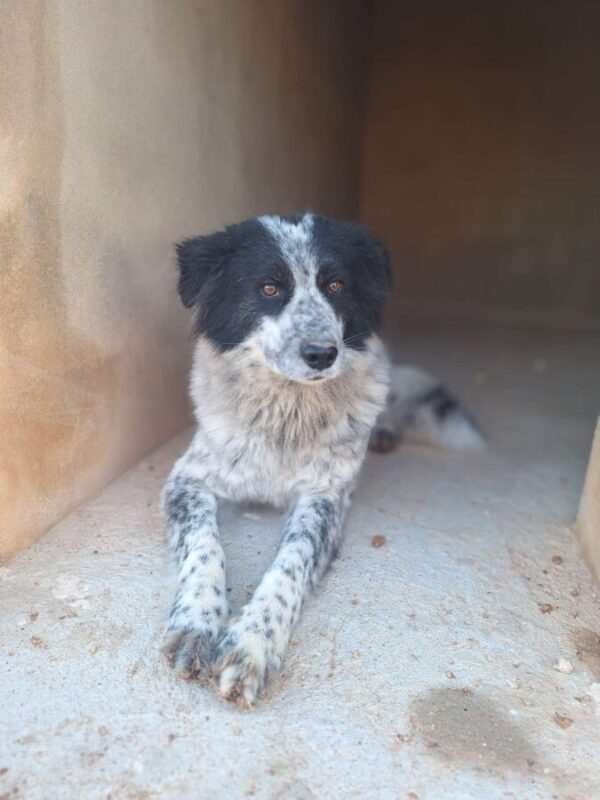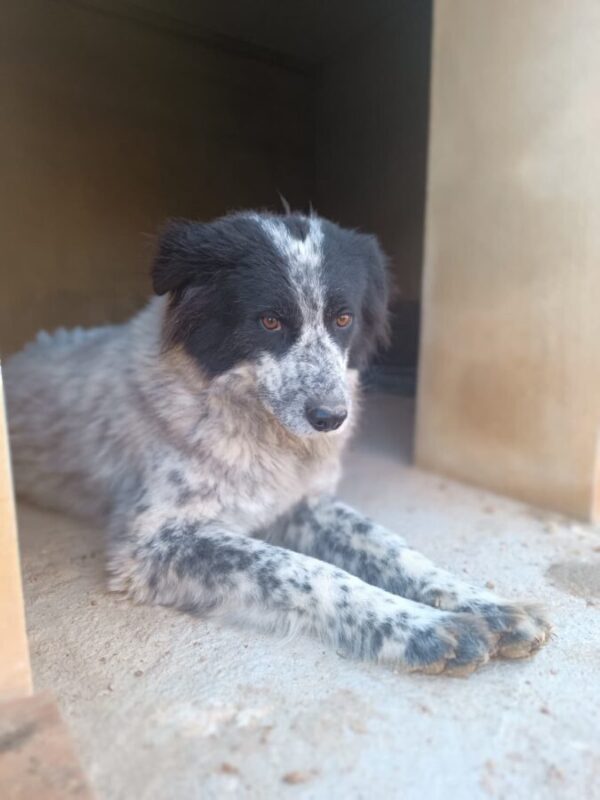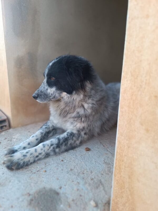 Iziar est un peu timide, elle a eu du mal à faire confiance, elle n’est pas encore totalement en confiance, mais elle progresse petit à petit et devient sociable avec les mâles et les femelles.