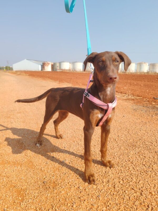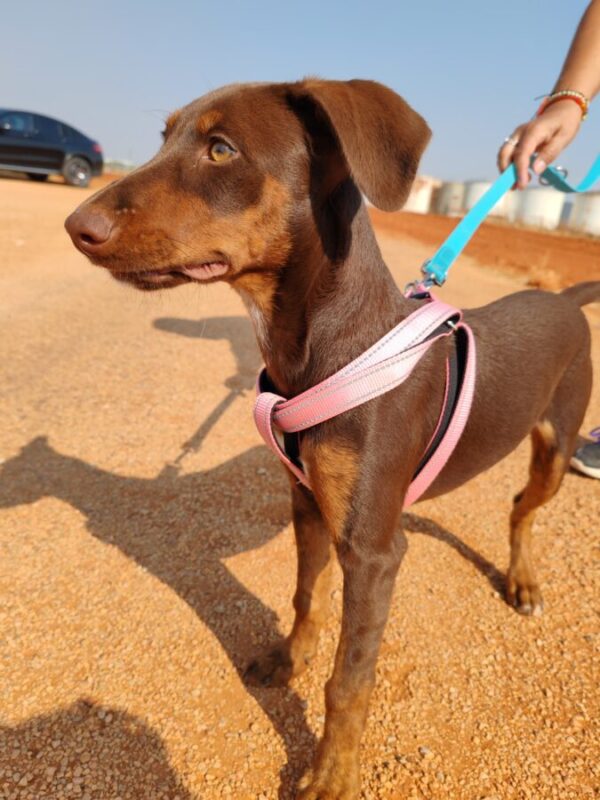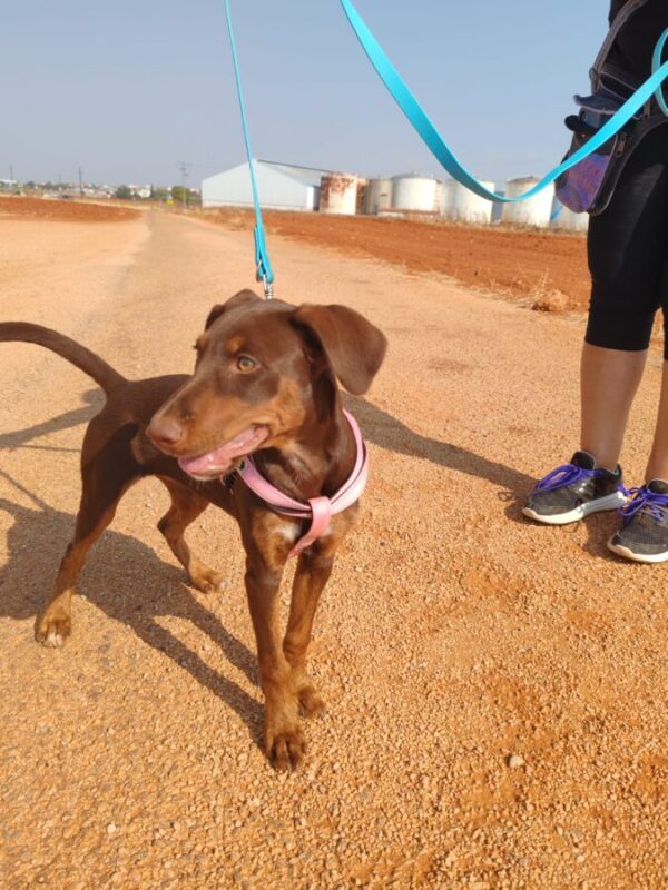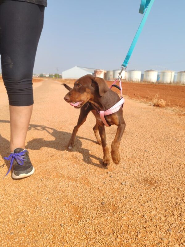 Elle est très active et marche en laisse.