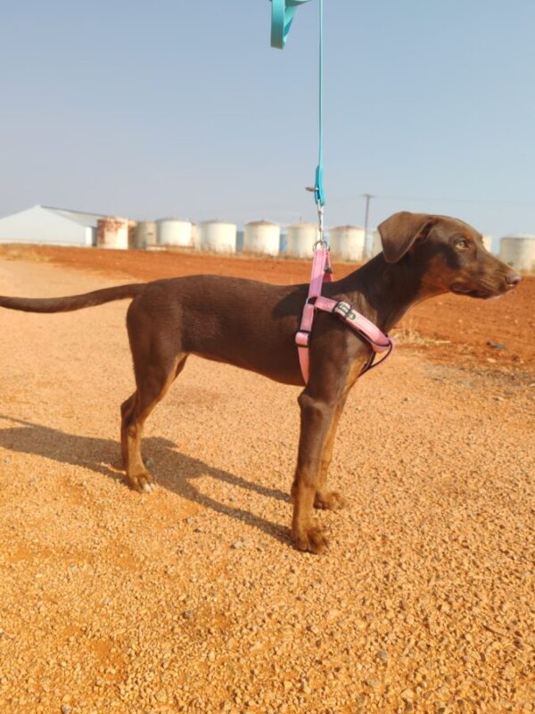 Au refuge, Rubi est sociable et très affectueuse avec les humains, elle est sociable avec les mâles et les femelles de son espèce.